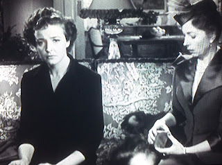 Dennis' wife Katherine (Agnes Moorehead) is first to arrive. Katherine walks in Jane's house. She is soft-spoken, cool and not completely focused. Agnes plays the scene quietly. She eyes Jane warily and looks around the room with a slight disinterest. She concentrates on lighting and smoking her cigarette and as the viewer, you can feel the character waiting and knowing the score. Katherine's knowledge of the affair is confirmed when she realizes that Jane's husband Fred (Bruce Bennett) is completely unaware. Concerned and surprised, she asks, "He doesn't know?" As Bill eagerly takes Fred outside to tell him of the affair, Katherine addresses Jane in a wonderful speech that is truly the best moment in the film. Agnes, as Katherine, says: